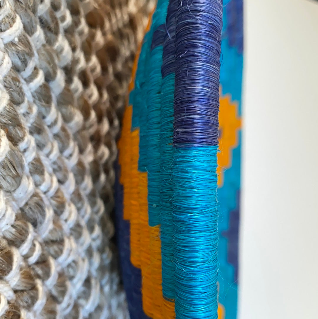 La cestería en rollo es el oficio artesanal más representativo de Guacamayas, Boyacá. Este centro de mesa llenará de color y autenticidad tus espacios. Úsalo también en la cocina o para decorar tus lugares especiales.