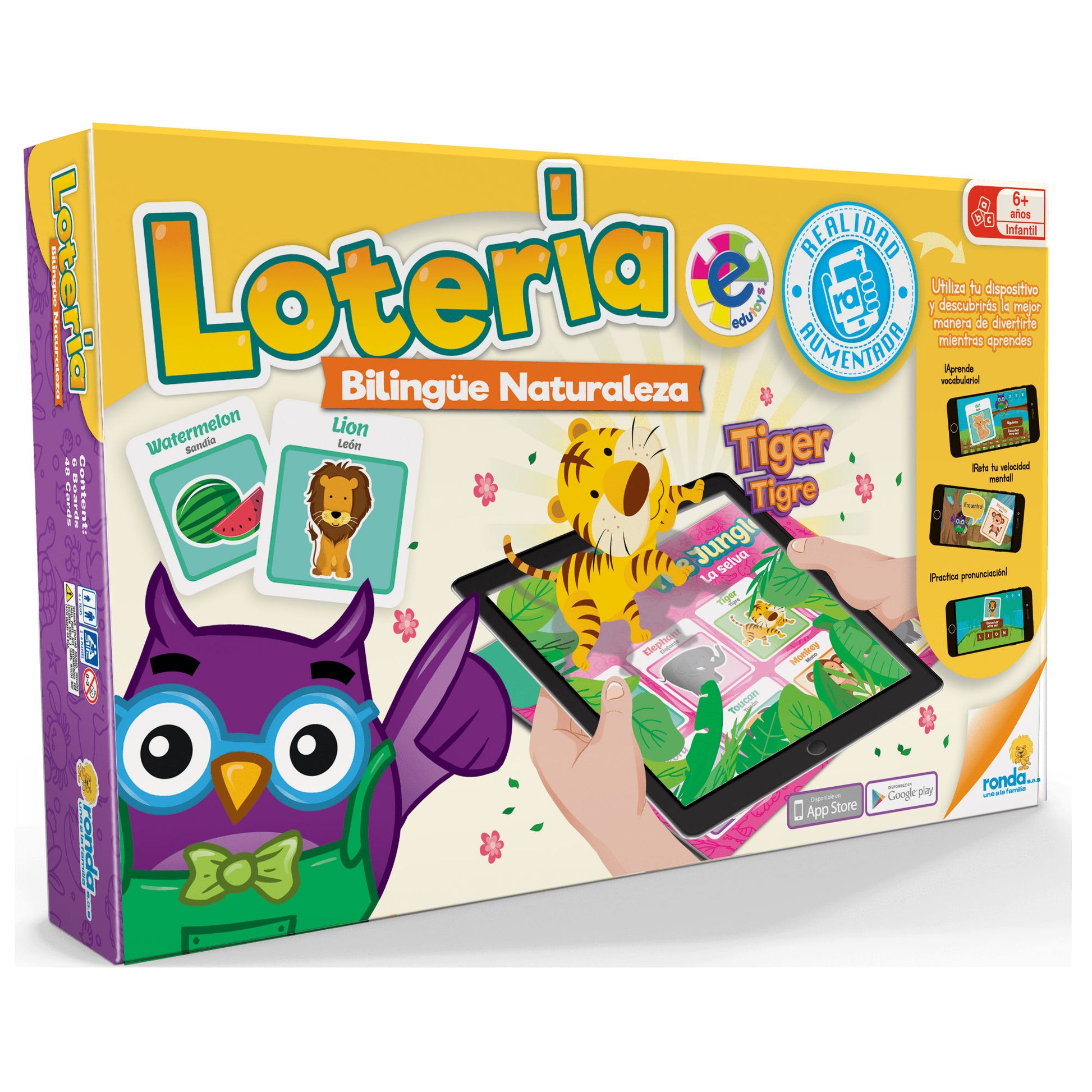 JUEGO DE LOTERÍA QUE FACILITA LA ASOCIACIÓN Y RELACIÓN, DE LA NATURALEZA, CONTENIDO INGLÉS Y ESPAÑOL.